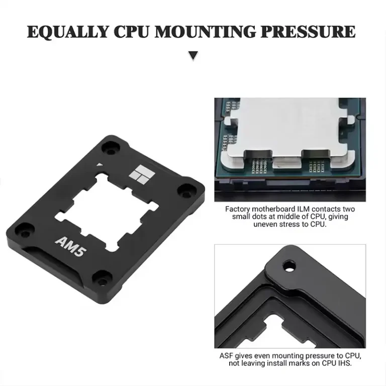 سوکت AM5 به دلیل طراحی خاص، در برابر فشارهای نا متعادل آسیب پذیر است. قاب نگهدارنده پردازنده ترمالرایت مدل AM5 Secure Frame V2 فشار بلاک خنککننده یا فن های سنگین را به صورت یکنواخت توزیع میکند. این امر از خمیدگی مدار مادربرد جلوگیری میکند.