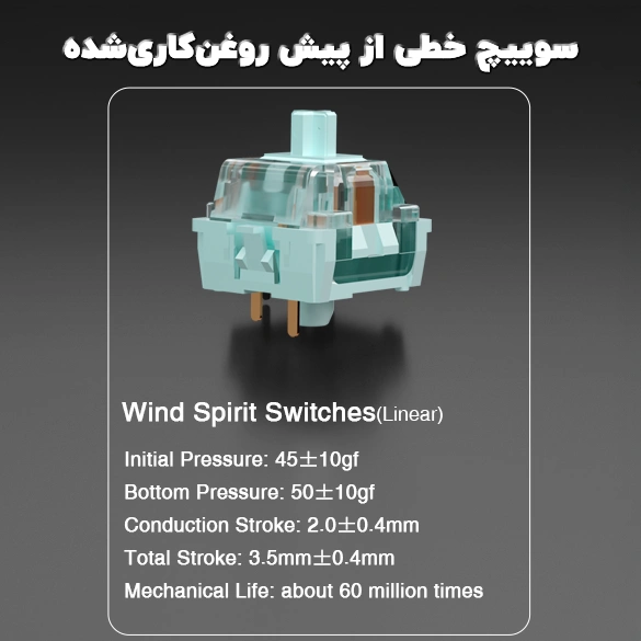 سوییچ های خطی از پیش روغن کاری شده (Pre-lubed Linear Switches): لمس نرمتر، صدای کمتر، عملکرد سریعتر.