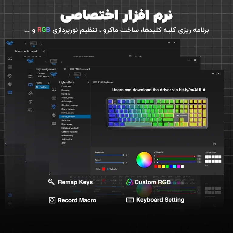 دانلود نرم افزار اختصاصی AULA برای ویندوز، از طریق آن می توانید نورپردازی را تنظیم کرده و عملکرد کلید ها را برنامه ریزی کنید.